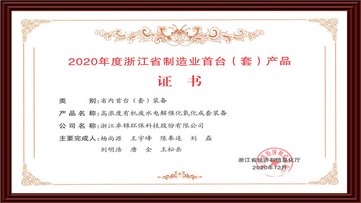 高濃度有機(jī)廢水電解催化氧化成套裝備入選2020年度浙江省裝備制造業(yè)重點(diǎn)領(lǐng)域首臺(套)產(chǎn)品